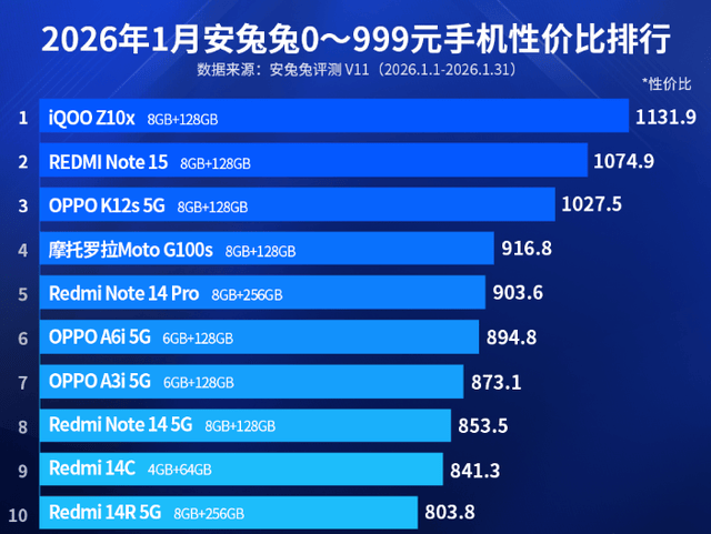 来说的确,—999元手机性价比排行榜中正在2026年1月份安兔兔0, Note15排列第一名和第二名iQOO Z10x和REDMI。兔平台上正在安兔,为1131.9分和1074.9分这两款智在行机的性价比评分分散。中其,x打造了三款配色iQOO Z10,月岩钛、星穹黑分散是风羽青、,阵式双摄计划背部采用举矩,环呼吸灯搭配光,消息等场景的指导可能完成来电、。